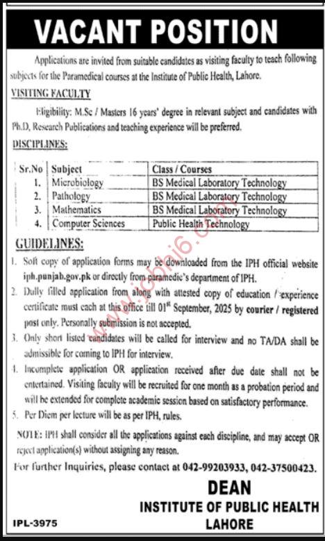If you want, I can also prepare a short meta title and meta description for this posting so it performs even better in search results. That way, it will be more discoverable for job seekers searching for Institute of Public Health Lahore jobs or education sector government jobs in Lahore.